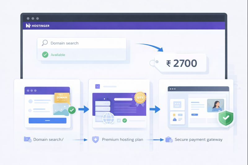 To build your website, the first step is purchasing a Domain Name and Hosting. We recommend Hostinger for its speed, reliability, and beginner-friendly dashboard.